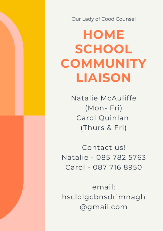 The HSCL co-cordinators meet parents throughout the year both in school and when out doing home visits. We aim to support parents in any way that is needed as you are the primary educators of your children.